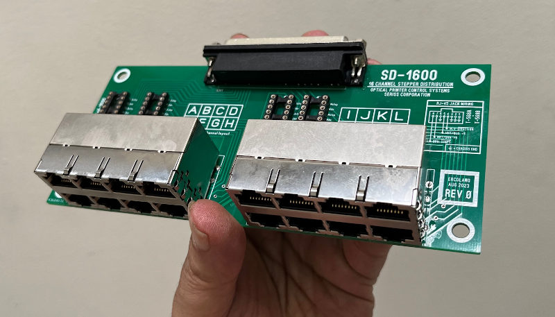 When you're experiencing noise problems during testing, install the four SD-1600's 2K pullup resistors in RN1 thru RN4. If noise problems persist, use a scope to check the step/direction signals at the motor drives. You should see the "steps" signal to normally reside at +5v, and fall to ground during stepping. The "direction" signal should either be +5v or GND during motor running, and not some value between.