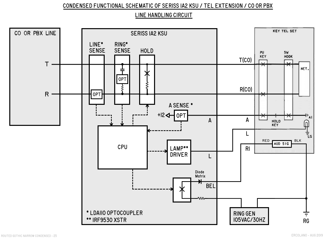 What's new in REV-G is when boards are interlinked, the lamp flashing for all lines is synchronized. This was not true with the REV-F and REV-F1 boards, where the flashing rate for ringing and hold for lines 1+2 could drift out of sync with the flashing rate for lines 3+4, since the cpus managing the two sets of lines weren't synchronized. A single wiring change was added in Rev-G to synchronize flashing along with a small software modification.