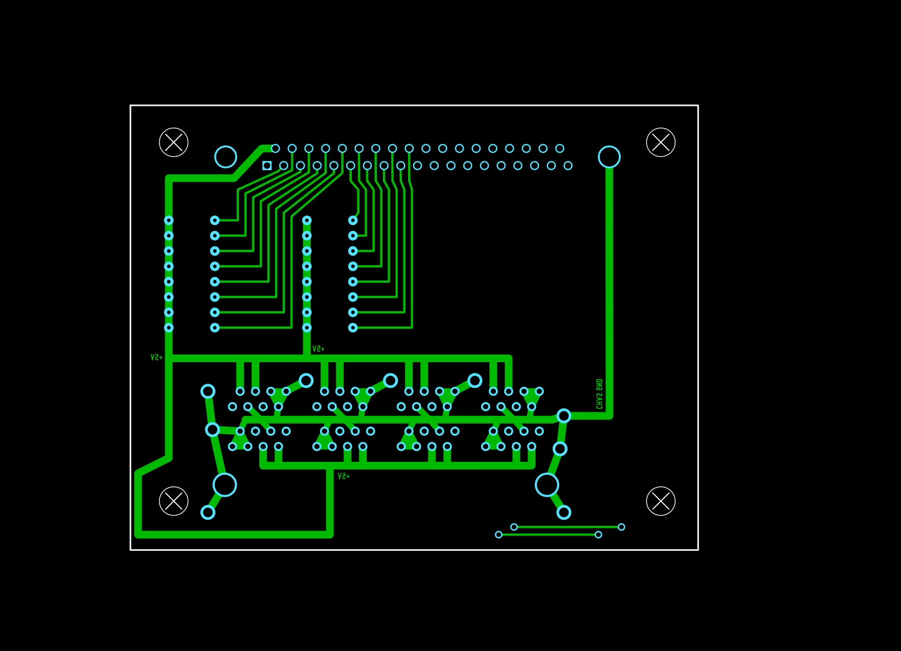 What follows are images of the circuit layout layers as they appear in Sprint6 Layout and/or a Geber viewer (such as the open source tool 'gerbv'), along with board mounting dimensions.
