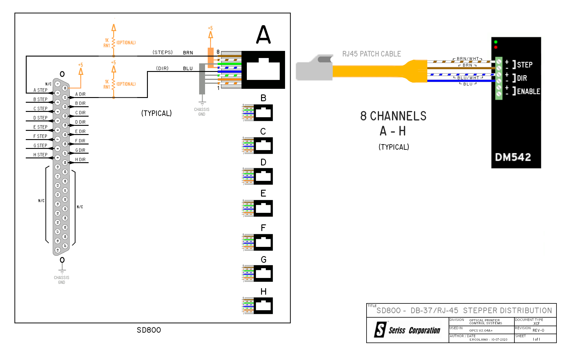 When wiring the RJ-45 cables to the stepper drives, follow the wiring diagram in the above schematics.