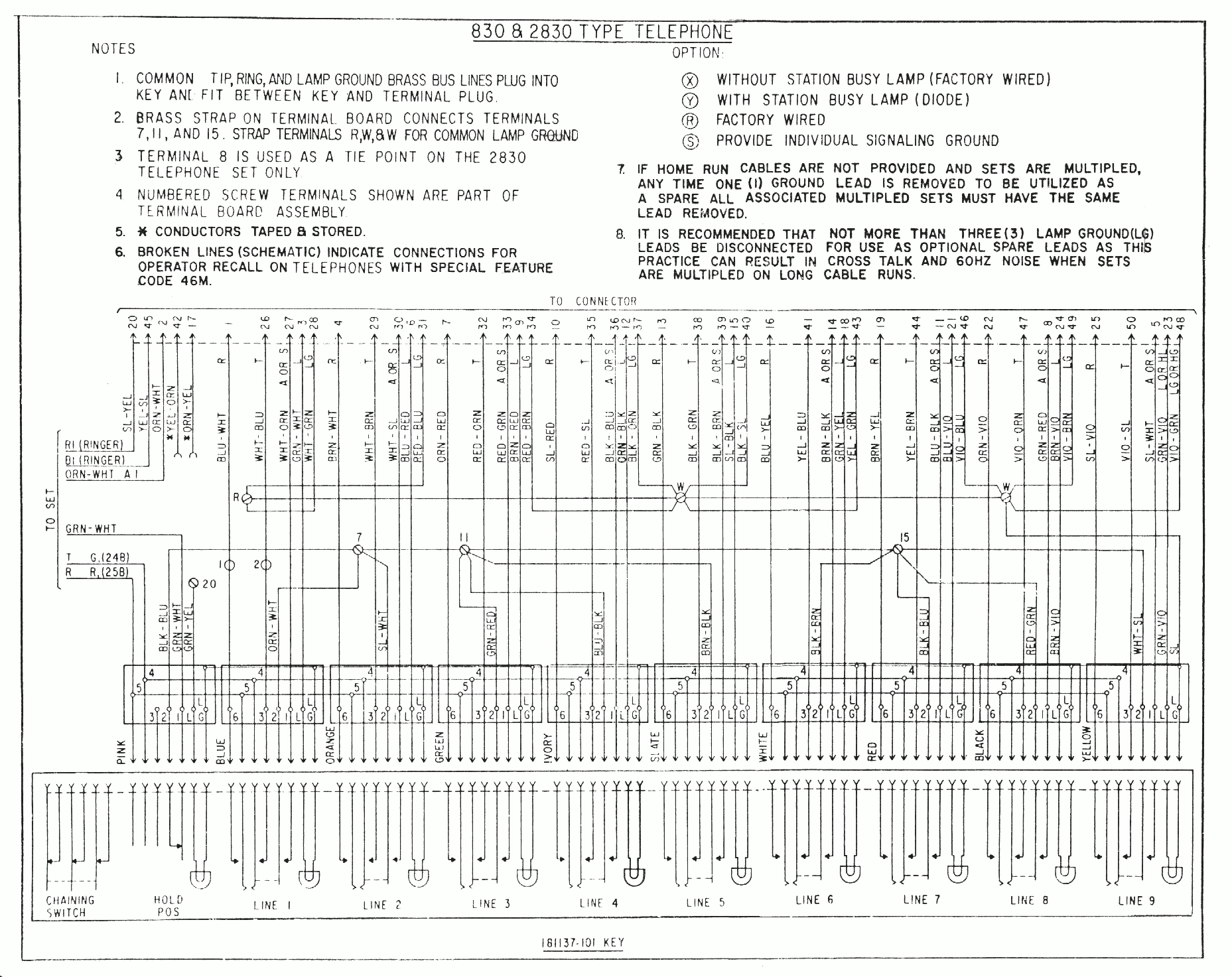 Note in this diagram (different from above), the "LG" terminals for all 9 lines