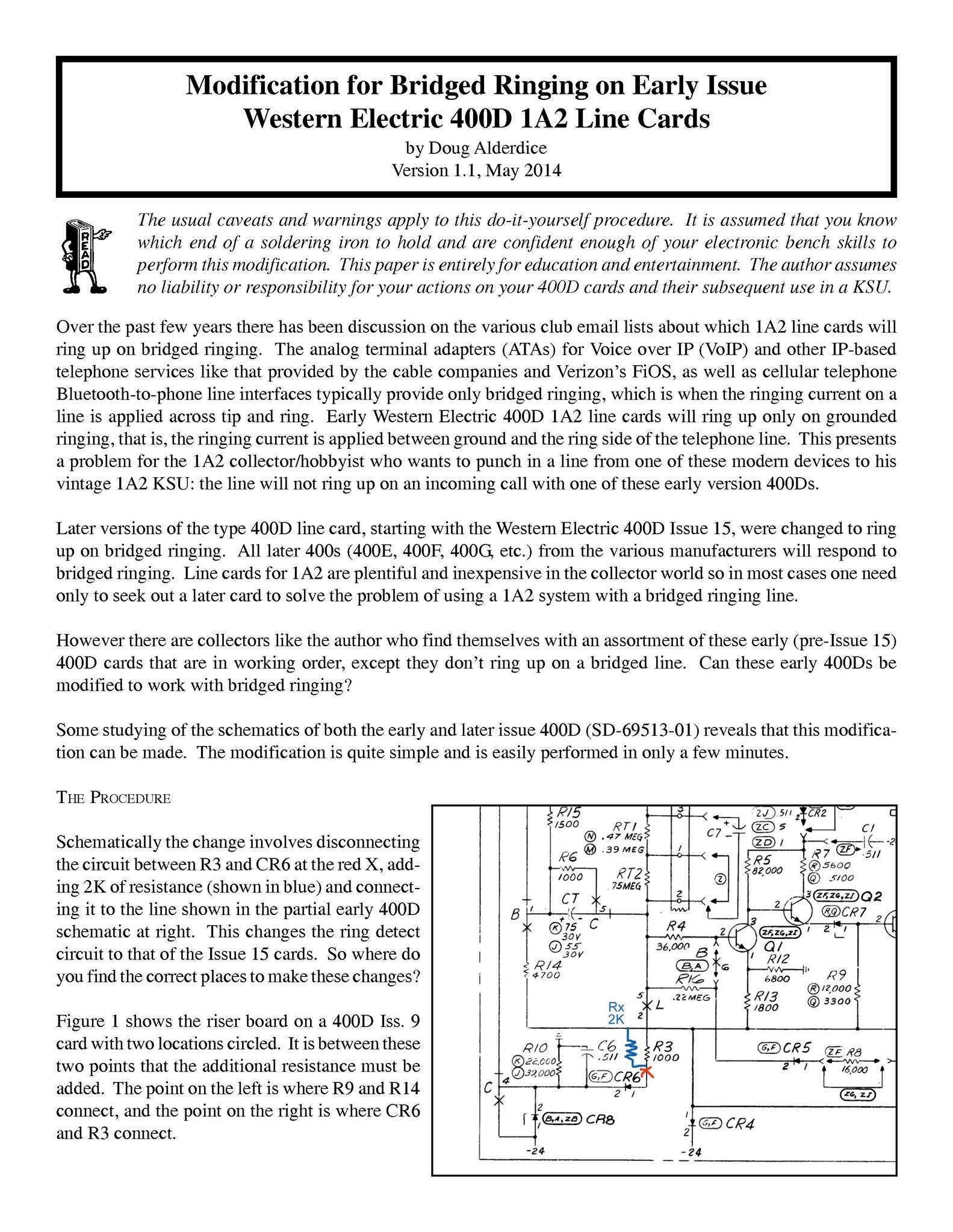 Doug found a way to make the modification as simply as possible, adding a single resistor and cutting a trace; amazing work on his part! See the text for a full description.