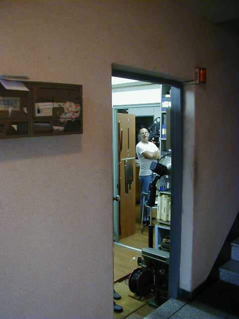 Checking the lamphouse, a typical Monceaux moment.