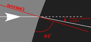 The refraction behavior depends entirely on the angle at which the light hits each edge, and whether the transition is low-to-high density, or high-to-low density.