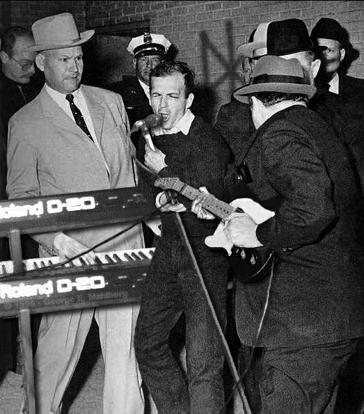 *It has been pointed out that if you look closely, below the roland logo, you can see the copyright stamp of the illustration George E. Mahlberg, who has a picture of himself doctored into the photograph! Compare it to Bob Jackson's original photograph to find him! Seems George has a website complete with a gallery of images, and full description of the oswald image.