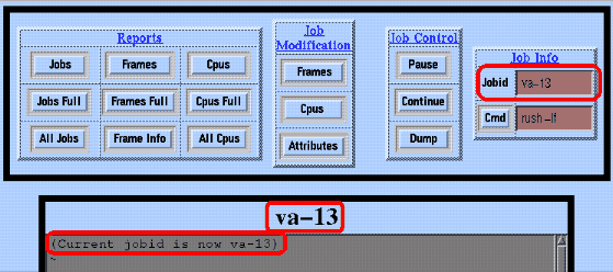 Select the job you want to control by clicking on it in the text window, then hit the Set Jobid button below, to make that the new 'current job':