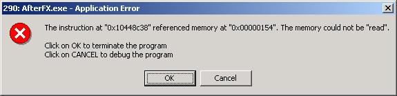 the result is usually an 'Application Error' from AfterFX.EXE: