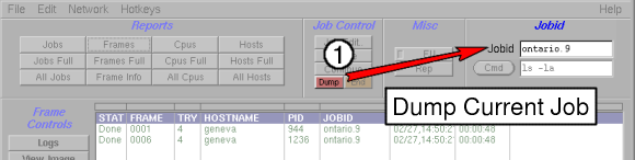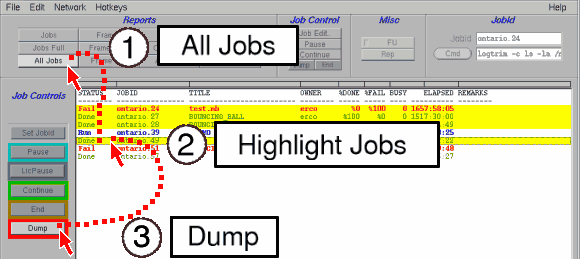 on the network, highlight the jobs you want to dump, then hit the Dump button at the left: