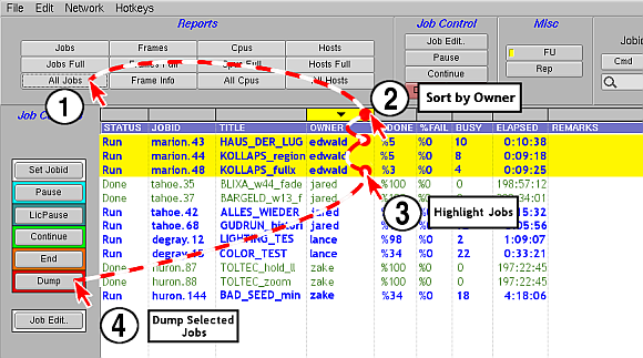 highlight, so besides dumping all the jobs, you can Pause, End, or Continue them.