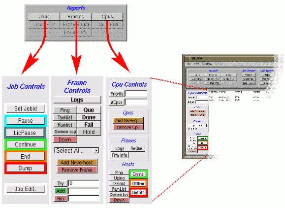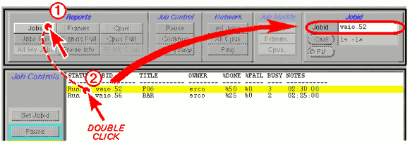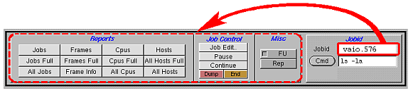 which dumps the job shown in the 'Jobid:' window in the upper right of irush.